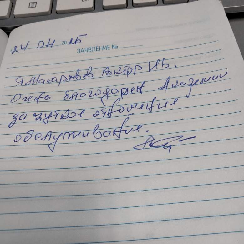 Я макарычев Виктор Ив. Очень благодарен Академии за чуткое отношение обслуживание.