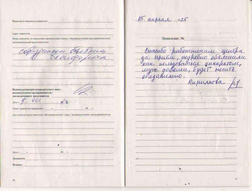 Спасибо работникам центра за прием , подробно объяснили, как пользоваться аппаратом, муж доволен, будет носить обязательно.