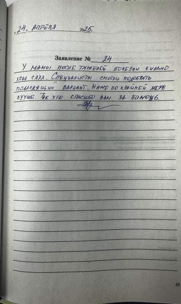 У мамы после тяжелой болезни сильно упал слух. Специалисты смогли подобрать подходящий вариант. Маме по крайней мере лучше. Так что спасибо вам за помощь.