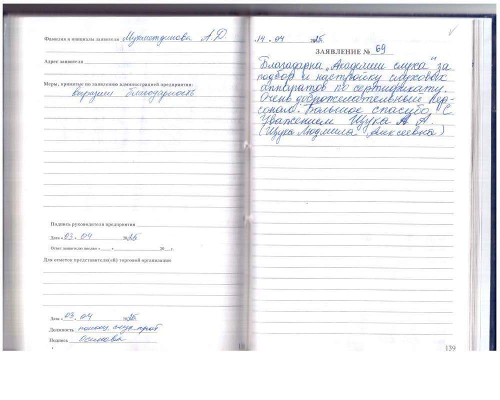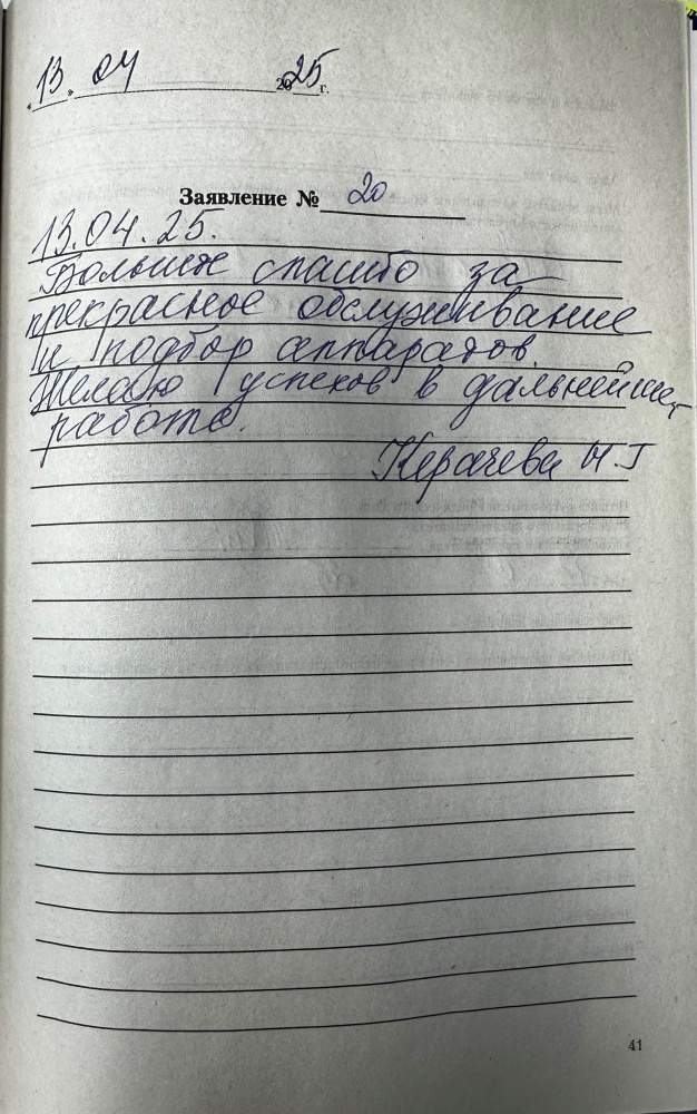 Большое спасибо за прекрасное обслуживание и подбор аппаратов. Желаю успехов в дальнейшей работе.