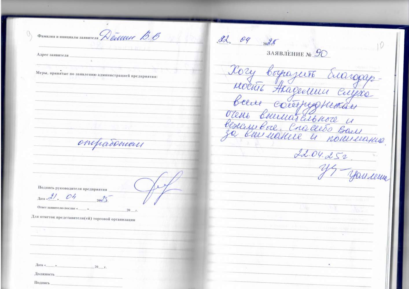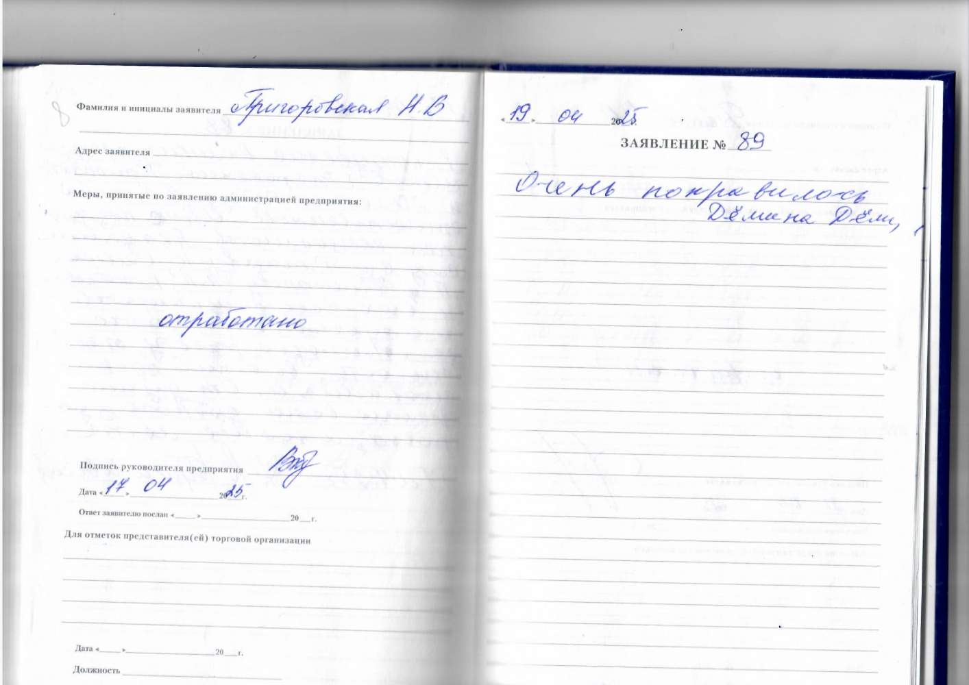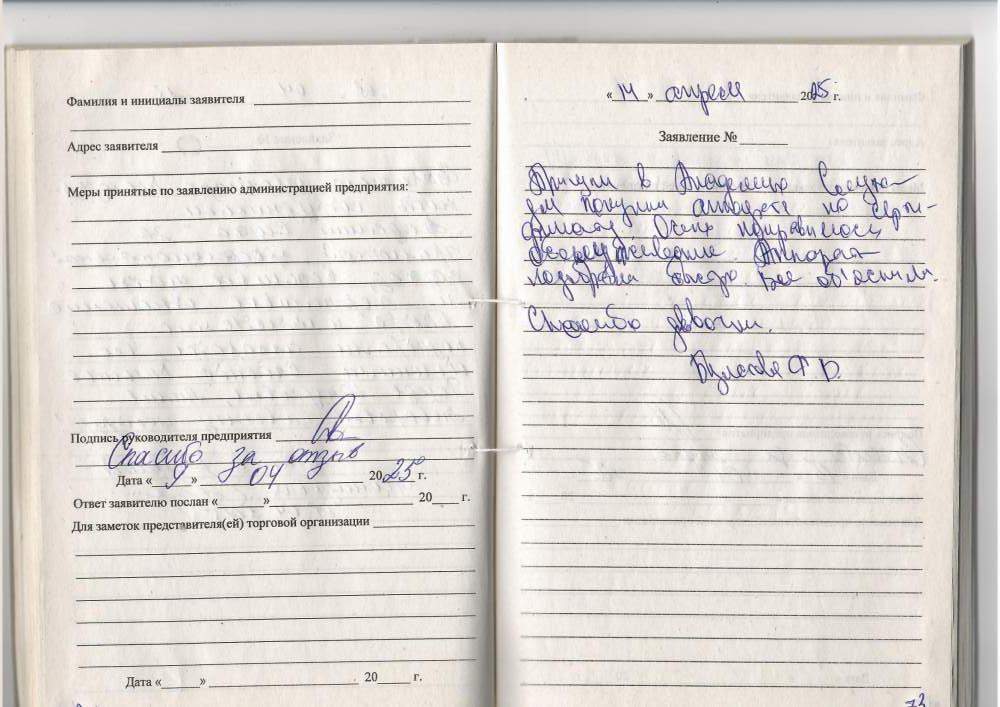 Спасибо за хорошее обслуживание и тёплый прием. Выражаю огромную благодарность.