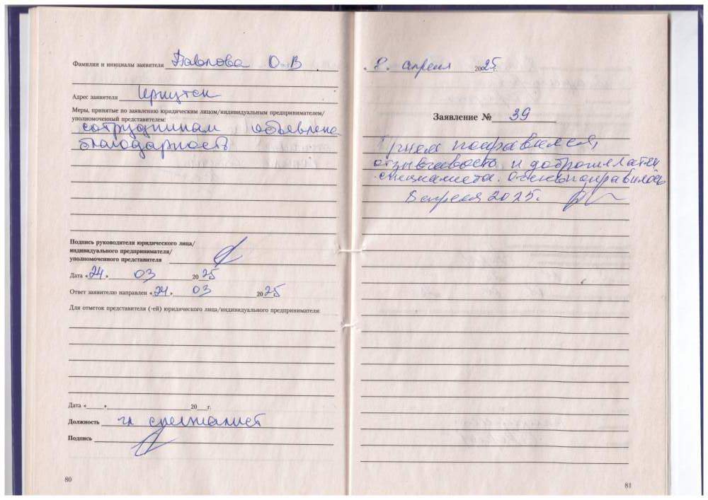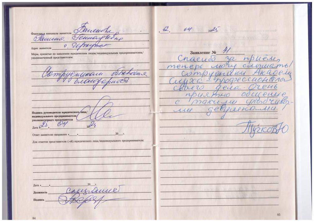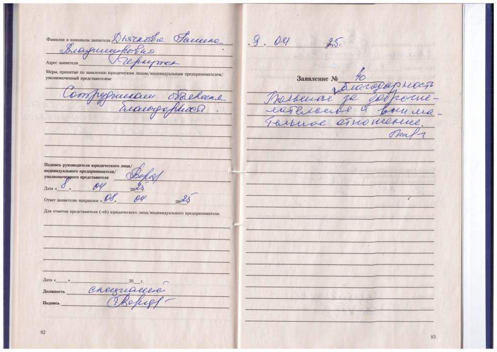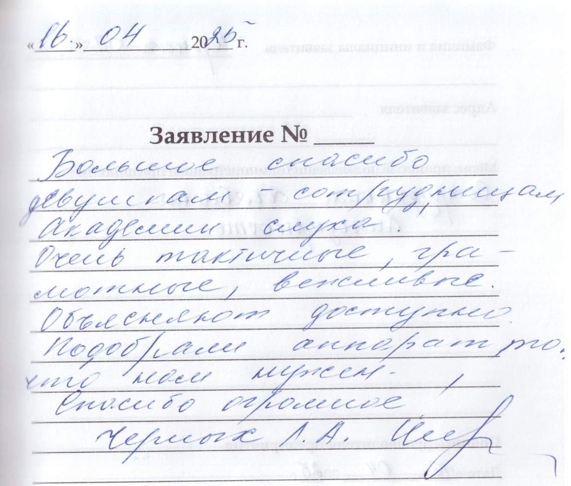 Большая благодарность за доброжелательное и внимательное отношение.