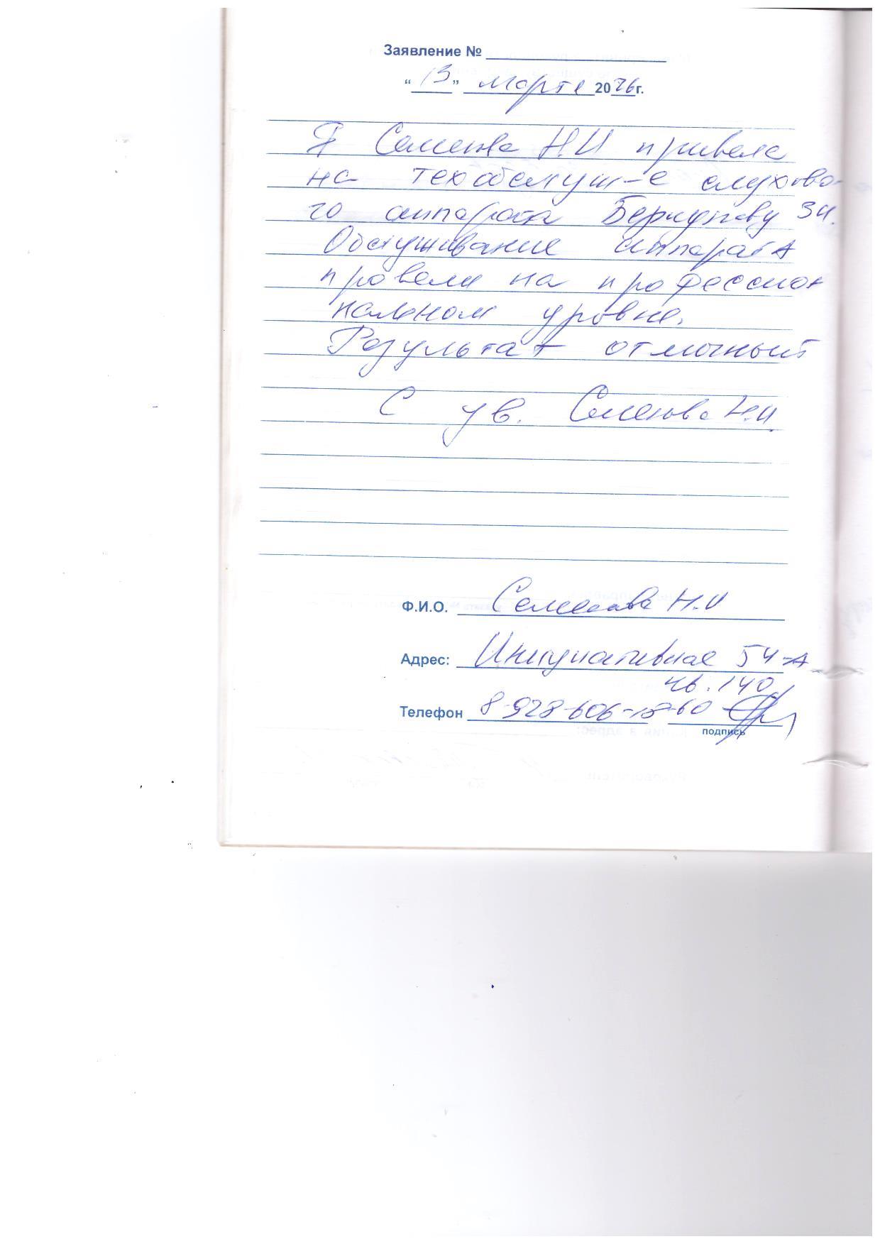 Семёнова Н.И. привела на техобслуживание слухового аппарата Беркунову З.И. Обслуживание аппарата провели на профессиональном уровне. Результат отличный.