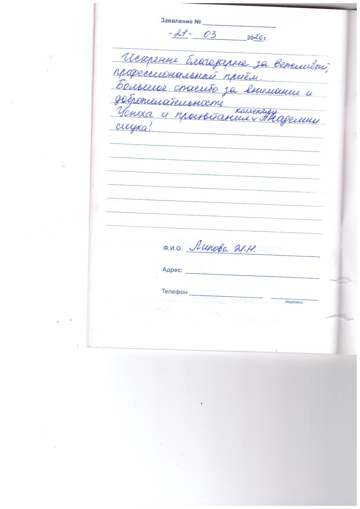 Искренне благодарна за вежливый, профессиональный приём. Большое спасибо за внимание и доброжелательность. Успеха и процветания коллективу Академии слуха!