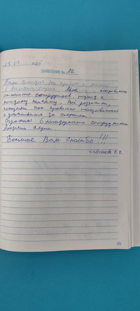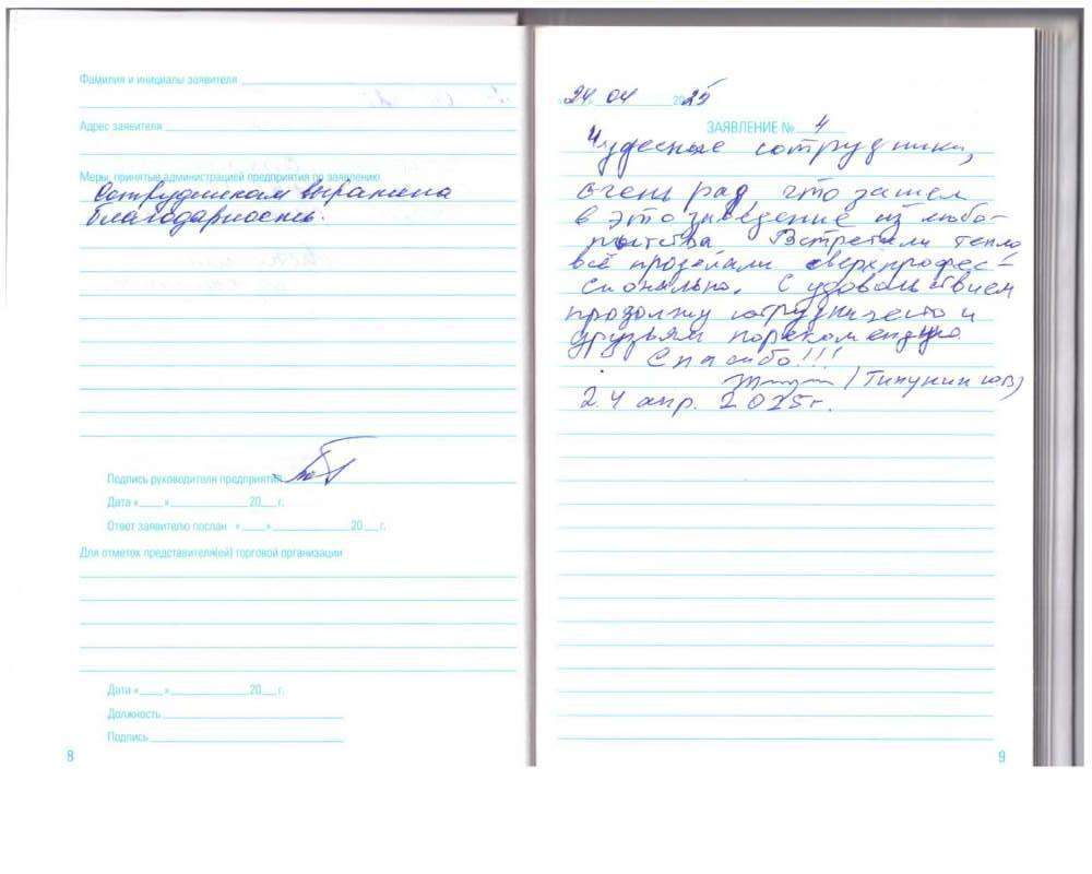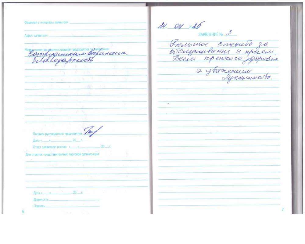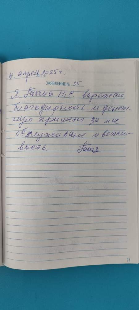 Я Тома Н.С. выражаю благодарность и денежную премию за мое обслуживание и вежливость.