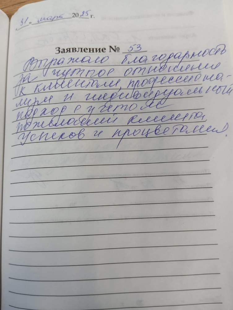 На приёме мне очень понравилось обслуживание. Очень благодарен сотрудникам учреждения.