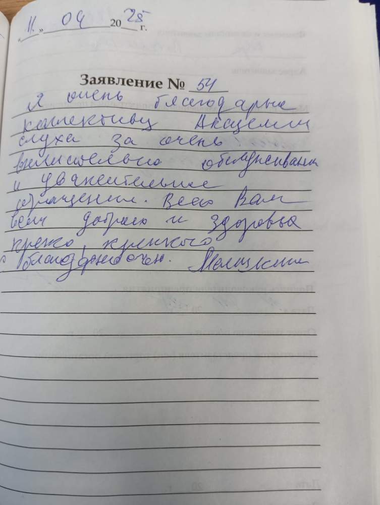 Я очень благодарна коллективу Академии слуха за очень внимательное обслуживание и уважительное обращение.