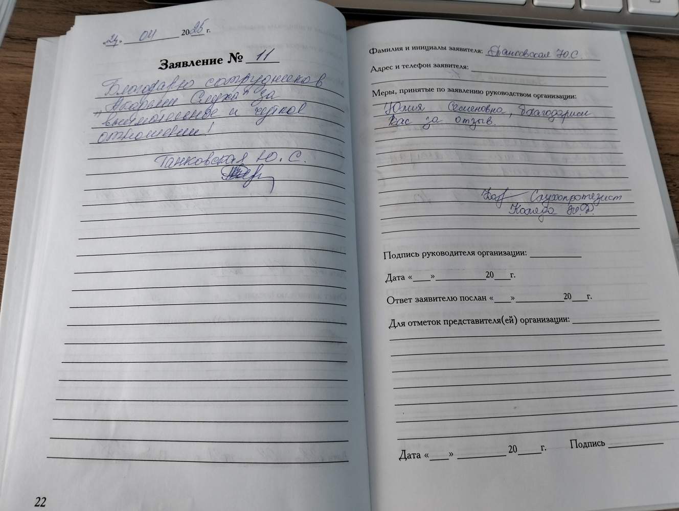 ЗАЯВЛЕНИЕ № 65
