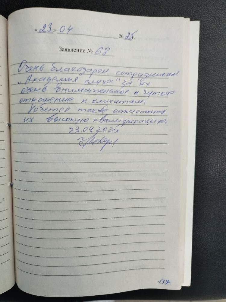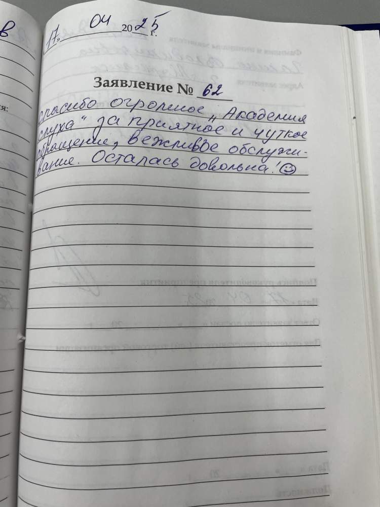 Спасибо огромное "Академии слуха" за приятное и чуткое обслуживание. Осталась довольна.