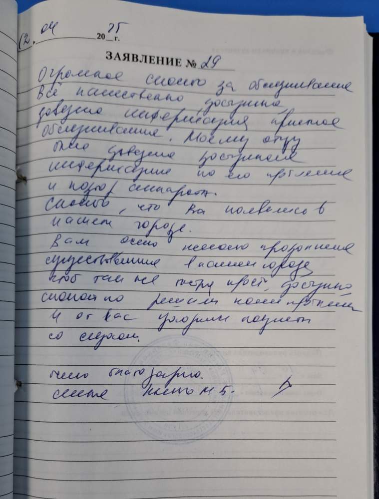 ЗАЯВЛЕНИЕ № 56