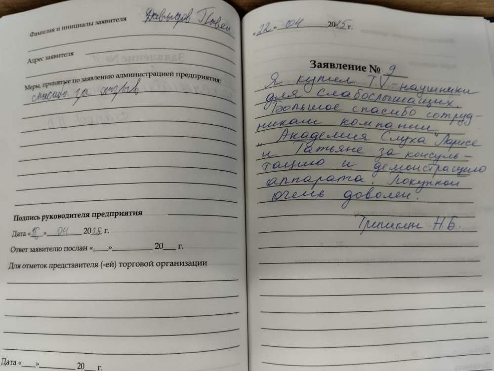 Я купил TV - наушники для слабослышащих. Большое спасибо сотрудникам компании "Академия слуха" Ларисе и Татьяне за консультацию и демонстрацию аппарата. Покупкой очень доволен
