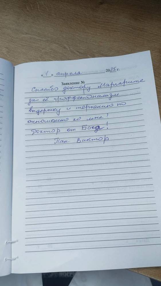 Спасибо доктору Маргарите за ее профессионализ , выдержку и терпению по отношению ко мне! Доктор от бога!