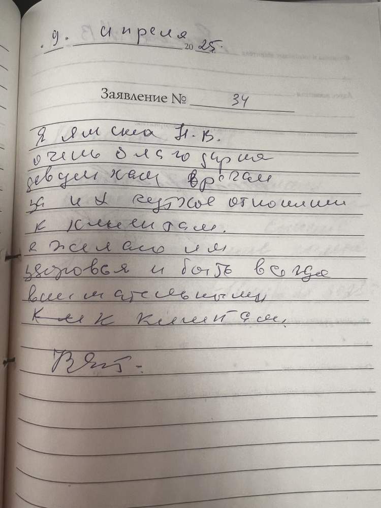 Спасибо вам за обслуживание . Очень радостно ухожу от вас . Здоровья вам, живите радостно успехов и достатка