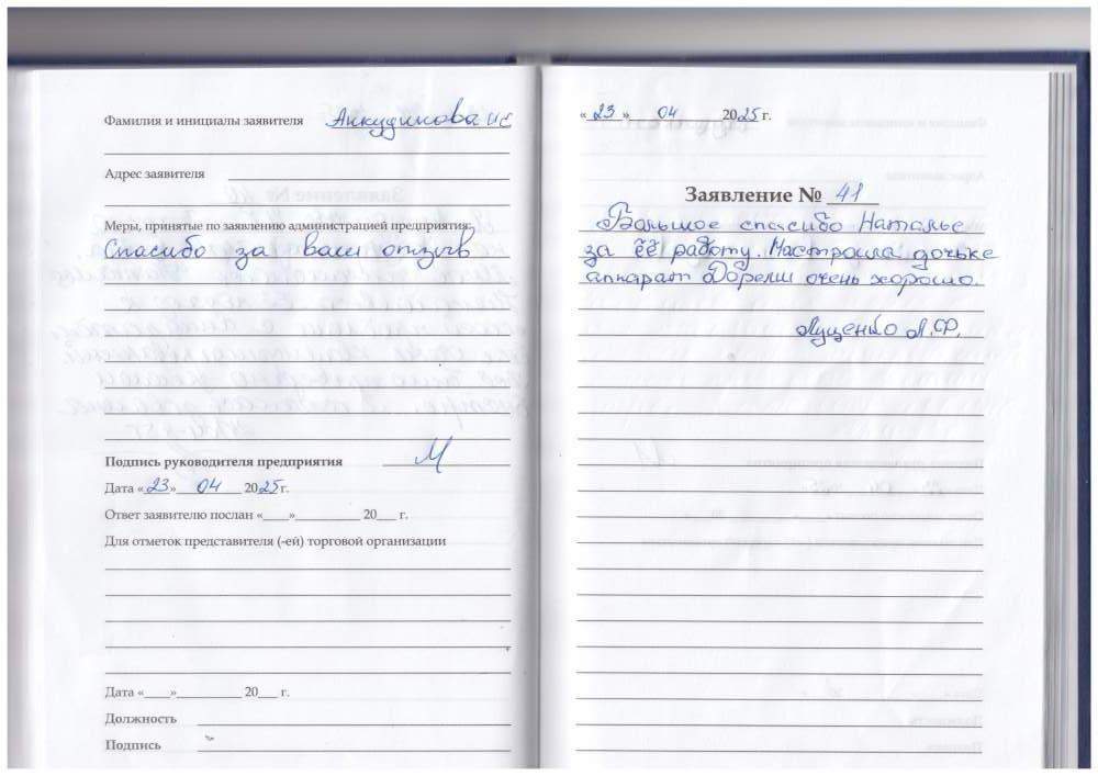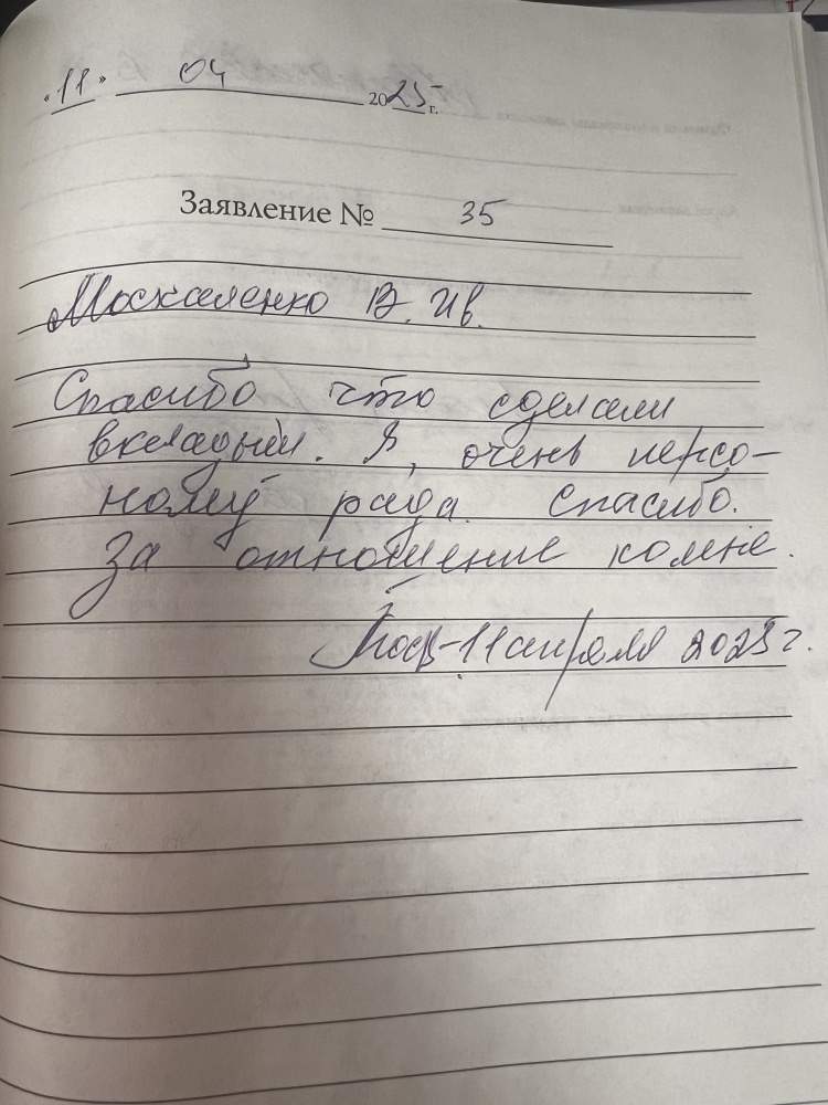 Спасибо что сделали вкладыши. Я очень персоналу рада. спасибо за отношение ко мне .