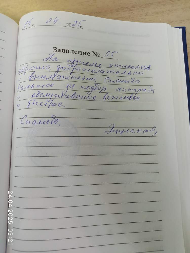 На приеме отнеслись хорошо, доброжелательно и внимательно.Спасибо большое за подбор аппарата и обслуживание вежливое и быстрое.