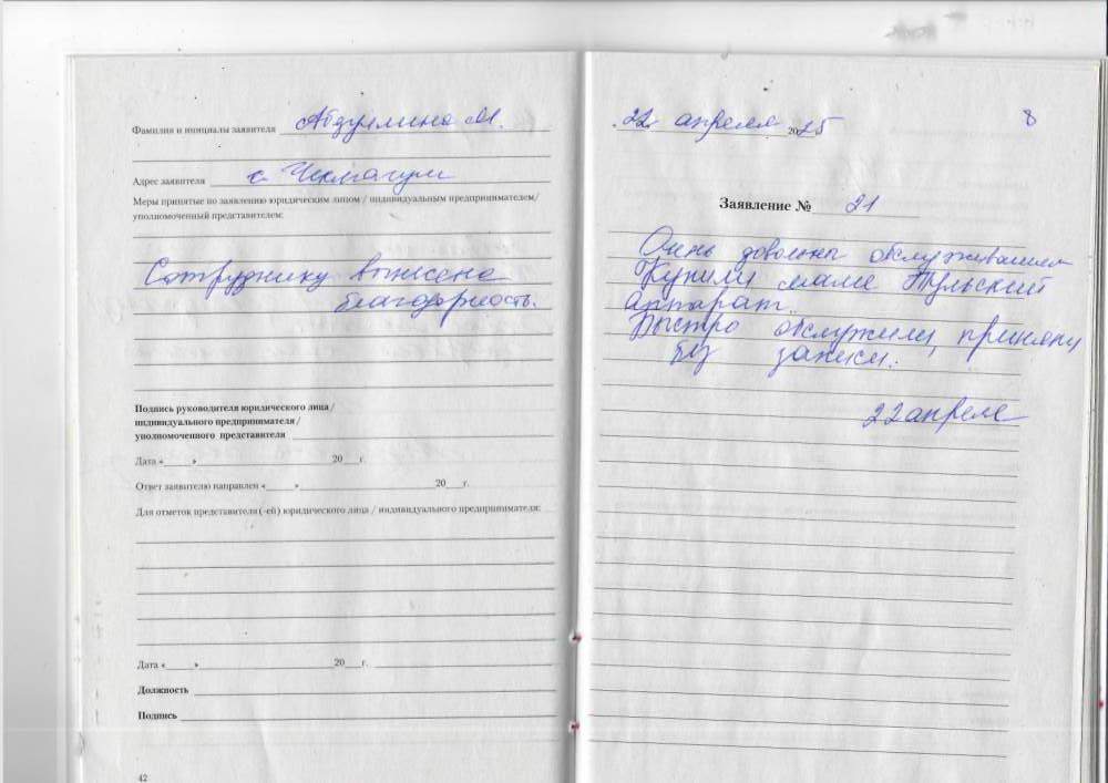 Очень довольны обслуживанием. Купили маме тульский аппарат. Быстро обслужили, приняли без записи.