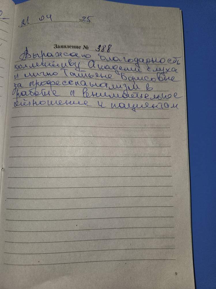 Благодарю коллектив Академии Слуха за доброжелательность и отзывчивость Огромное спасибо! Лукина М.И. г.Киров