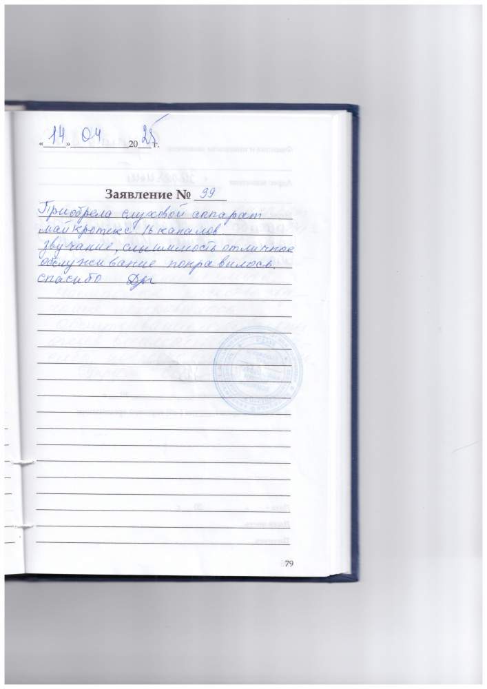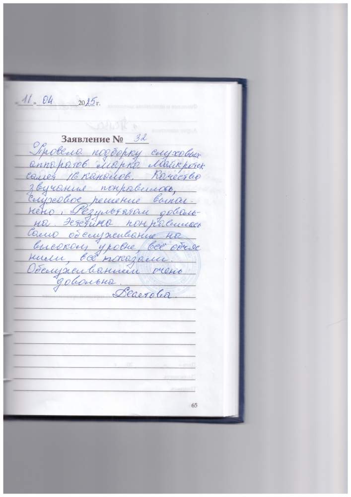 Приобрели слуховой аппарат по электронному сертификату марки Вита P 86 DSP- сверхмощный для четвертой степени слуха. Настройка, качество звучания понравилось. Обслуживанием довольны, очень внимательны. Спасибо, подробно все объяснили. Супруга ( подпись).