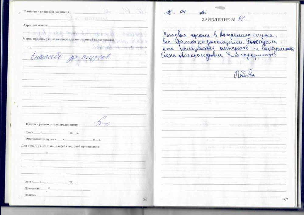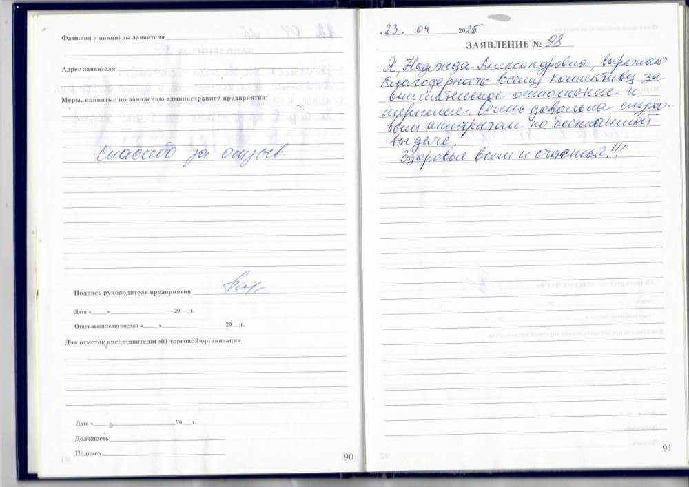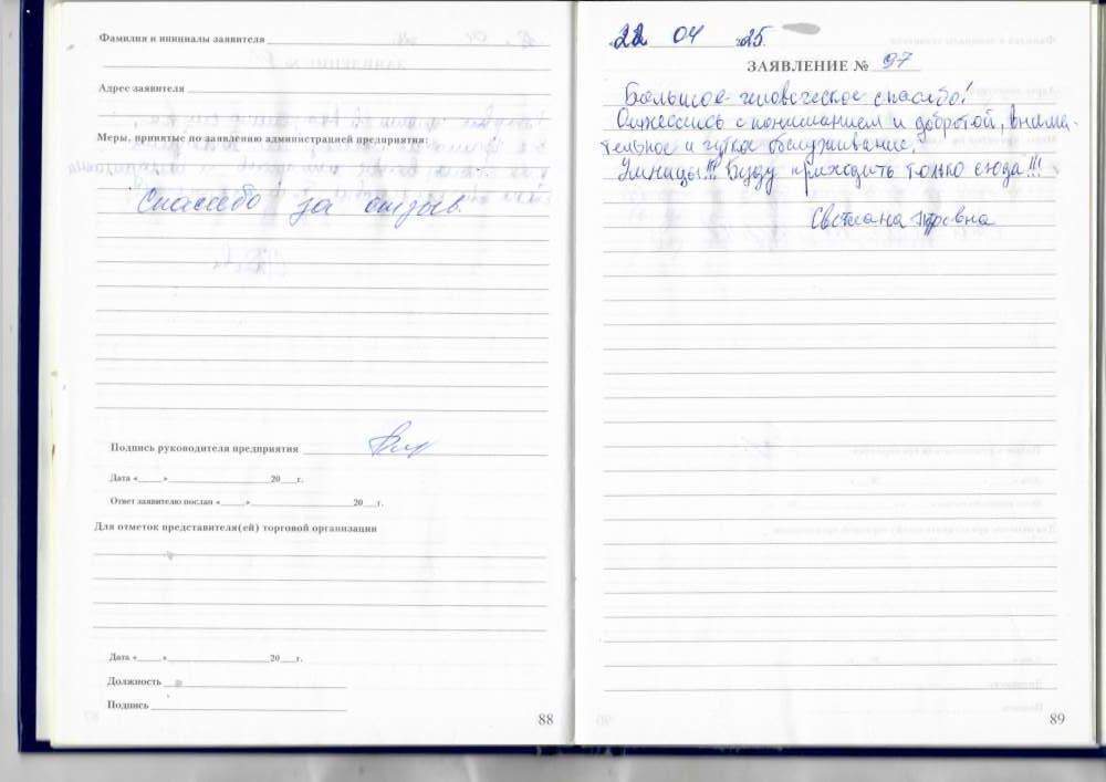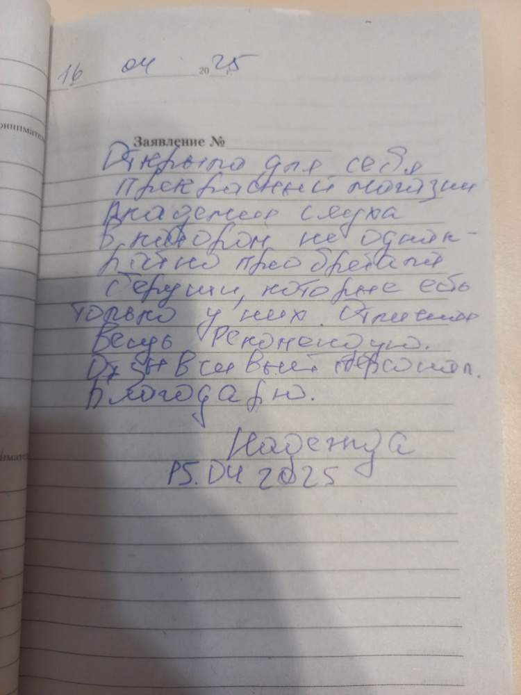 24.04.2025 Я, Филипцова А.С. очень довольна качественным обслуживанием, сотрудники всегда вежливые и добродушны. P.S. Ваш постоянный клиент.