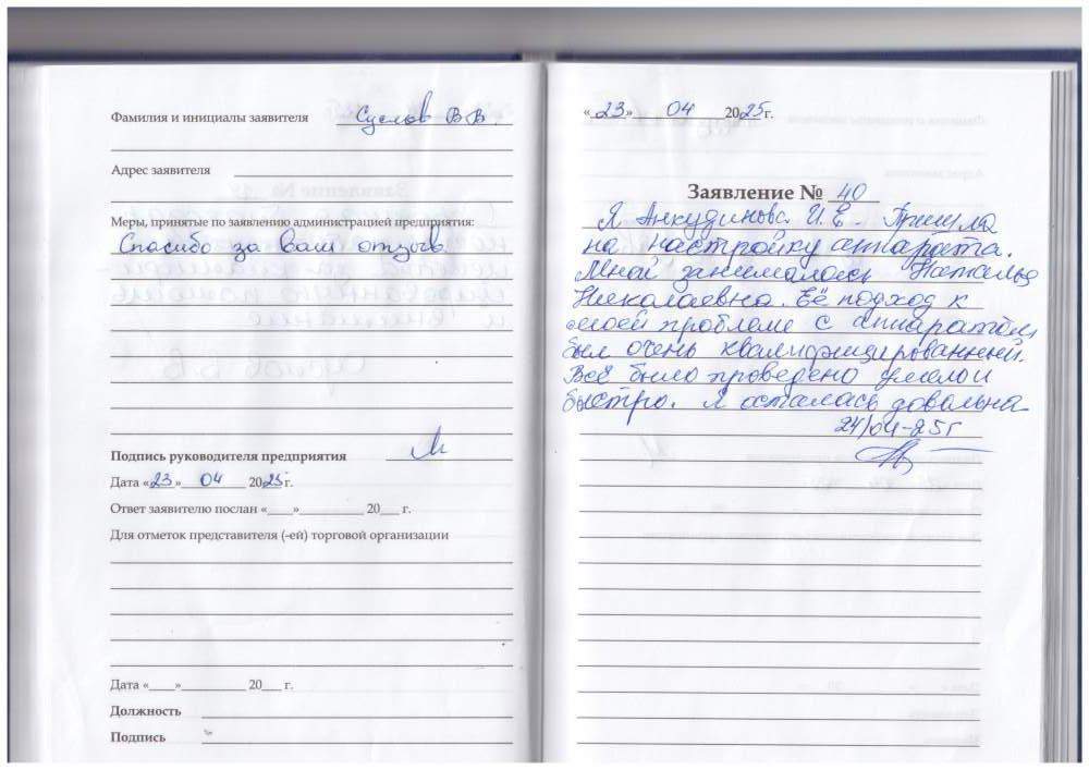 Я. Анкудинова И.Е. пришла на настройку аппарата. Мной занималась Наталья Николаевна. Её подход к моей проблеме с аппаратом был очень квалифицированный. Всё было проверенно умело и быстро. Я осталась довольна.