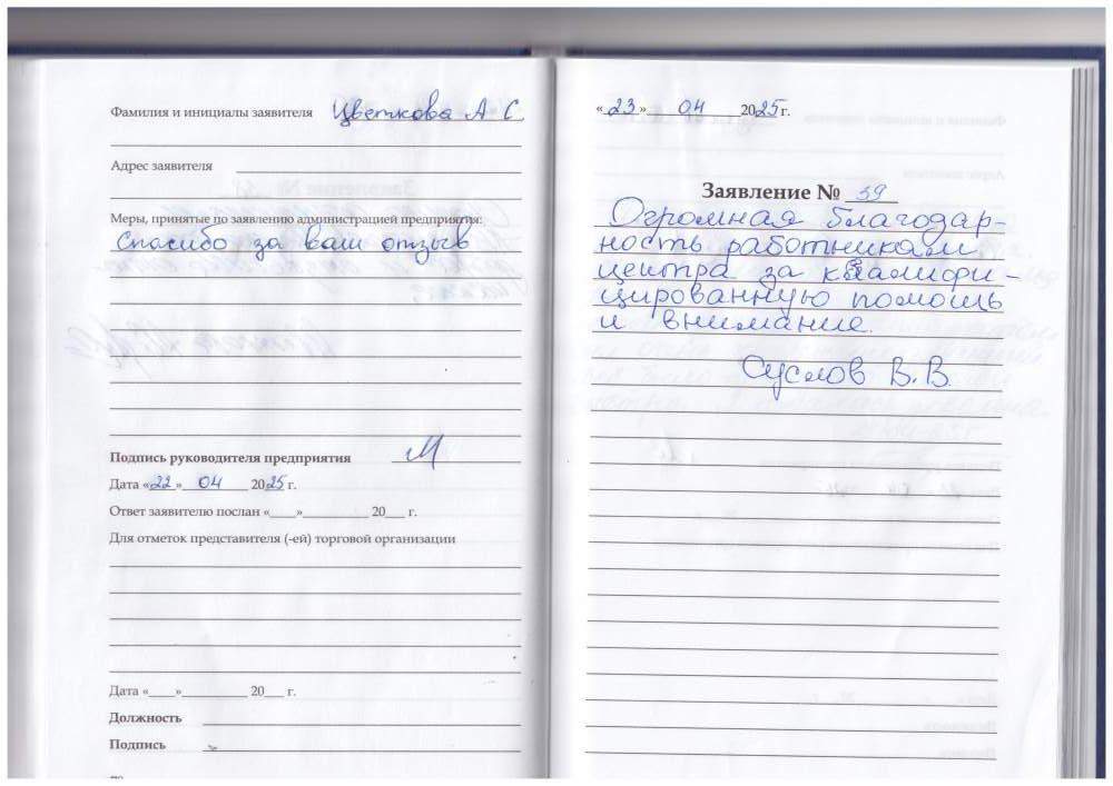 Огромная благодарность работникам центра за квалифицированную помощь и внимание.