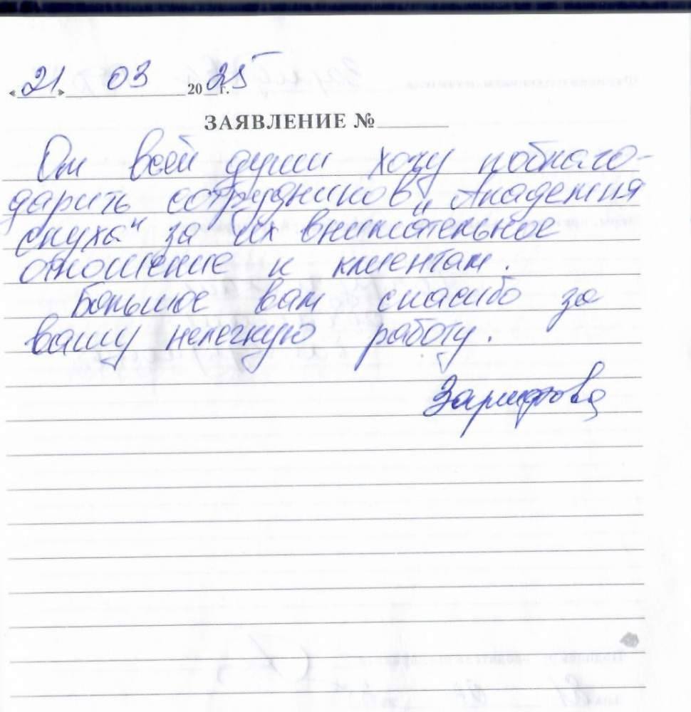 Благодарю работников "Академии слуха", за вежливое отношение и прием радушный.