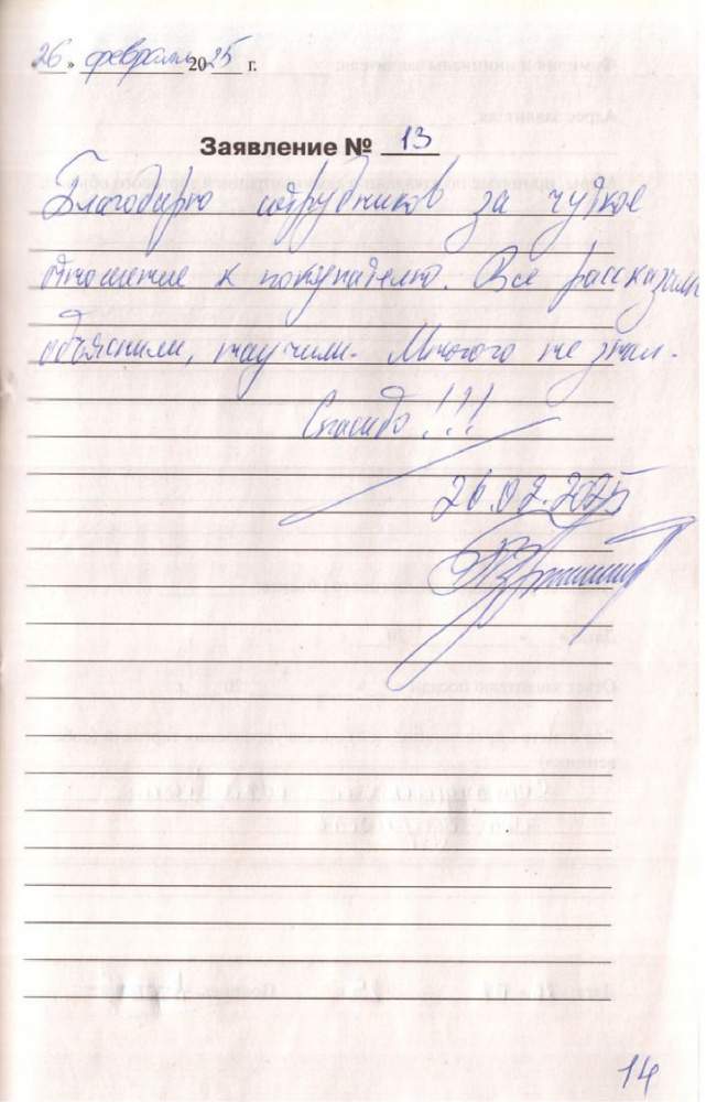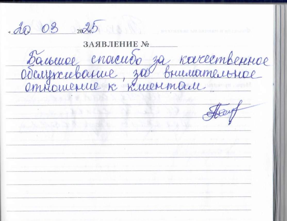 Большое спасибо за качественное обслуживание, за внимательное отношение к клиентам.