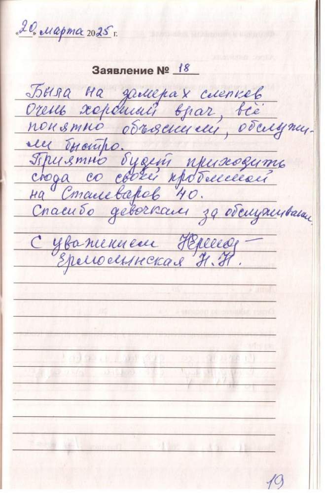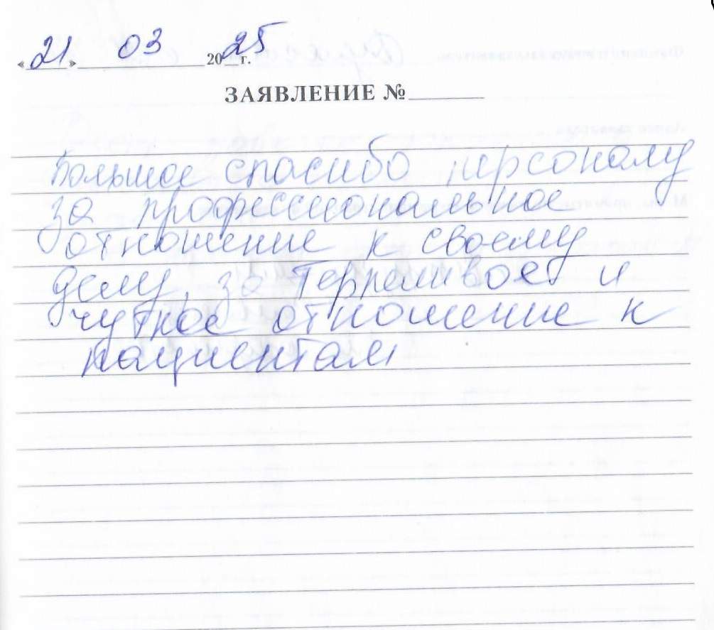 Большое спасибо персоналу за профессиональное отношение к своему делу, за терпеливое и чуткое отношение к пациентам.
