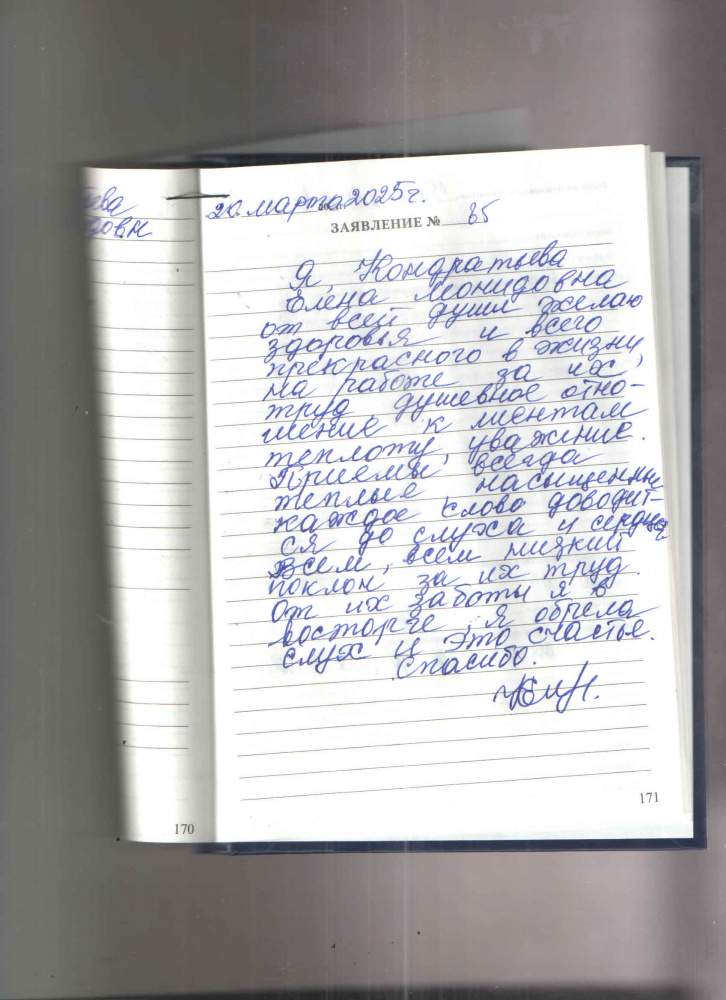 Я Кондратьева Елена Леонидовна от всей души желаю здоровья и всего прекрасного в жизни, на работе за ваш труд душевное отношение к клиентам, теплоту, уважение.Приемы всегда теплые насыщенные каждое слово доводится до слуха и сердца. Всем, всем низкий поклон за их труд. От их заботы я в восторге. Я обрела слух и это счастье. Спасибо.