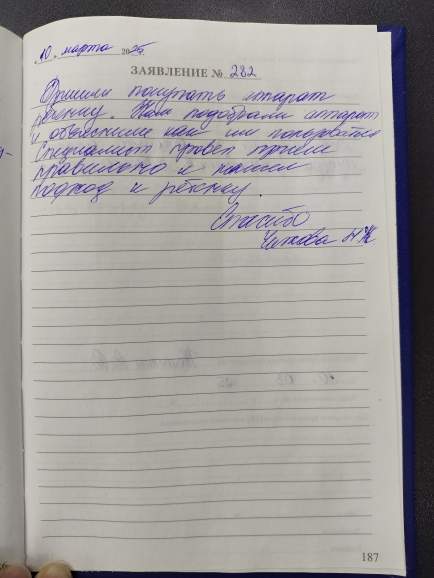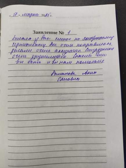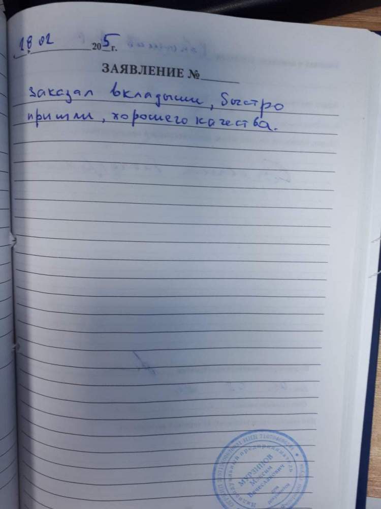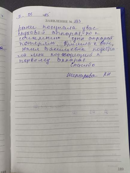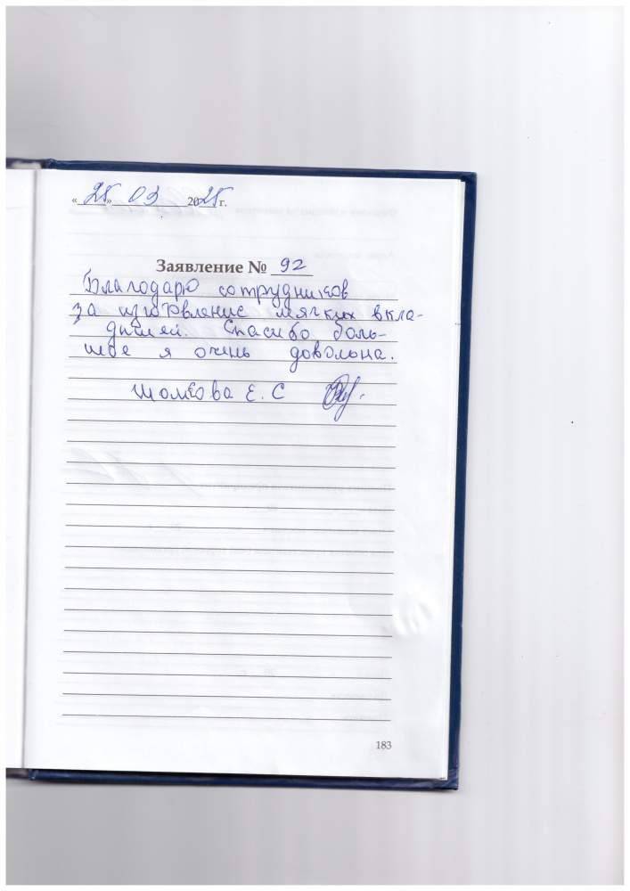 Благодарю сотрудников за изготовление мягких вкладышей. Спасибо большое, я очень довольна. Шолкова Е.С.