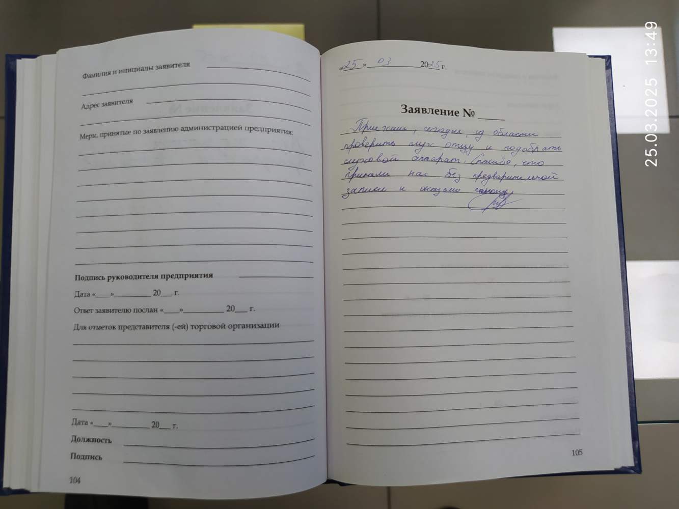 - Заявка на рассрочку