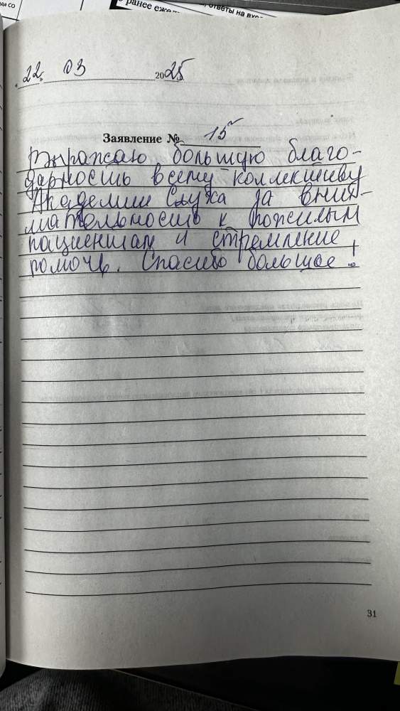Выражаю большую благодарность всему коллективу Академии Слуха за внимательность к пожилым пациентам и стремление помочь. Спасибо большое!