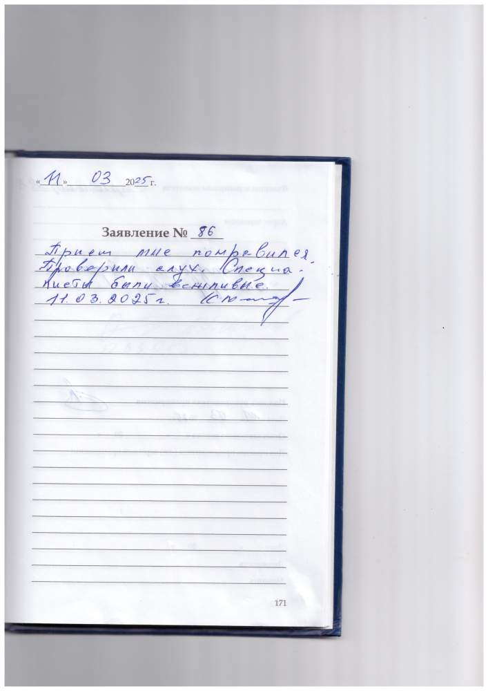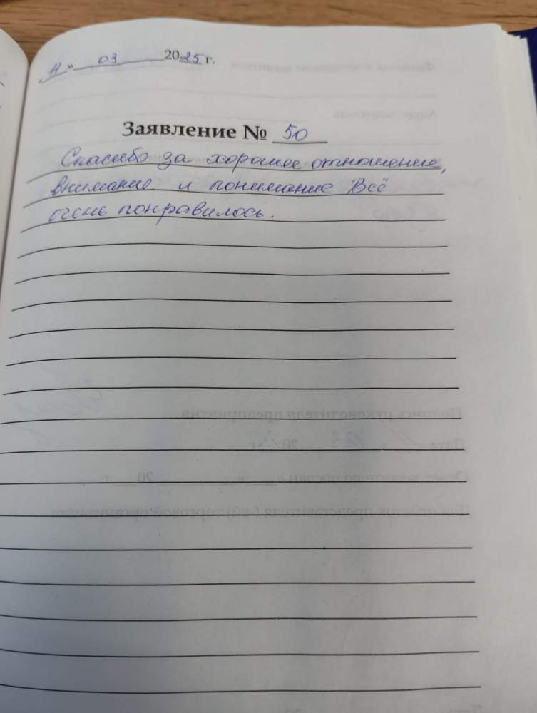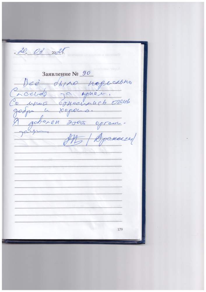 Всё было нормально. Спасибо за приём. Со мной относились очень добро и хорошо. Я доволен этой организацией.