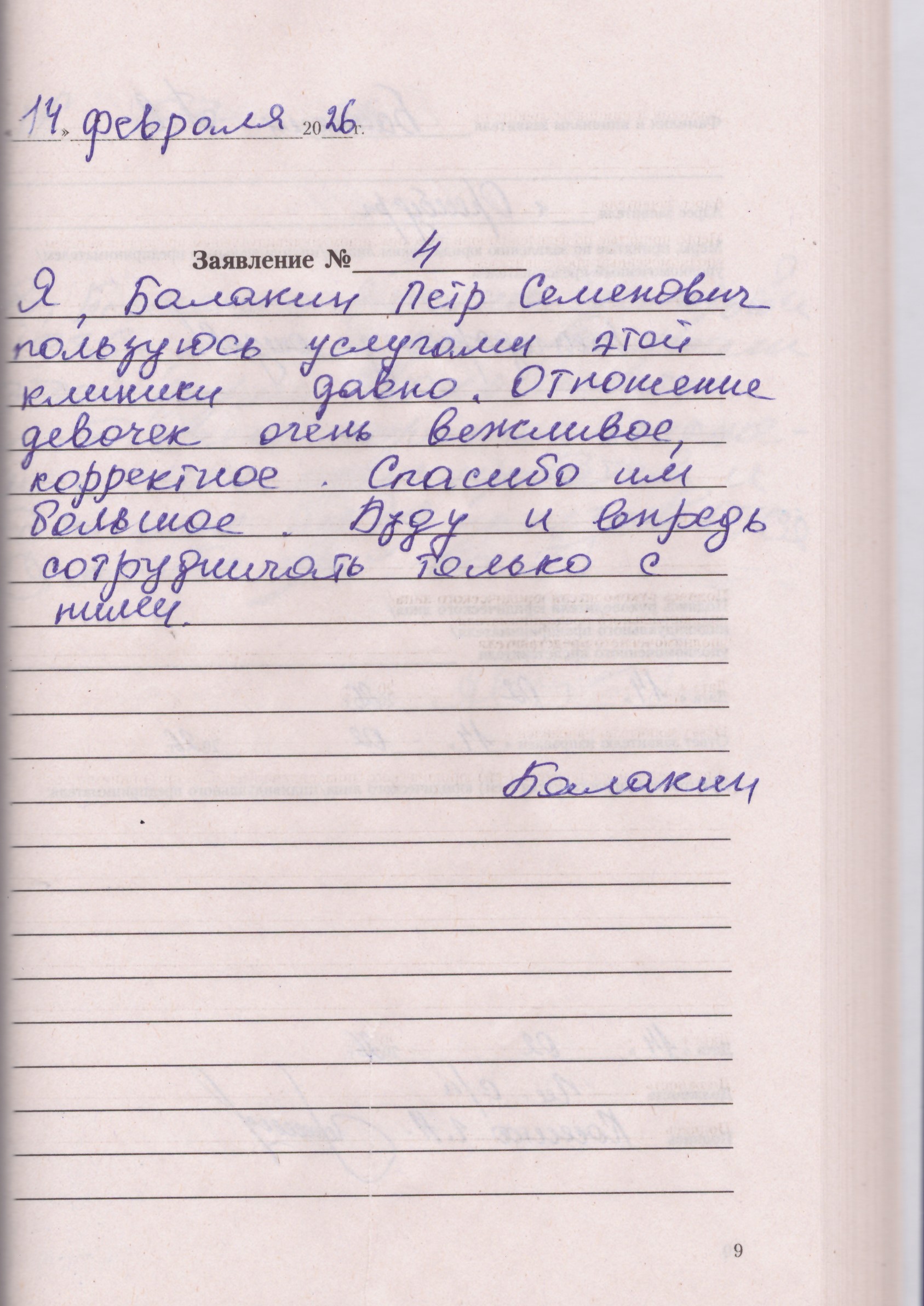 Я, Балакин Петр Семенович пользуюсь услугами этой клиники давно. Отношение девочек очень вежливое, корректное. Спасибо им большое. Буду впредь сотрудничать только с ними.
