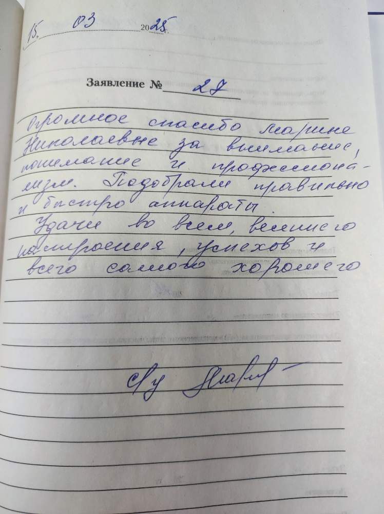 Я, Николаева Р.А. выражаю огромную благодарность за профессиональную деликатность. Получила удовольствие от посещения.