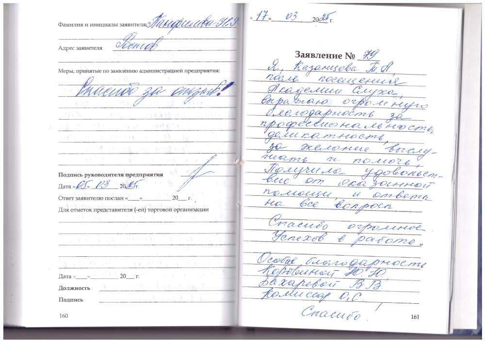 Я, Казанцева Т.А. после посещения Академии Слуха выражаю огромную благодарность за профессиональность, деликатность, за желание выслушать и помочь. Получила удовльствие от оказанной помощи и ответы на все вопросы.
