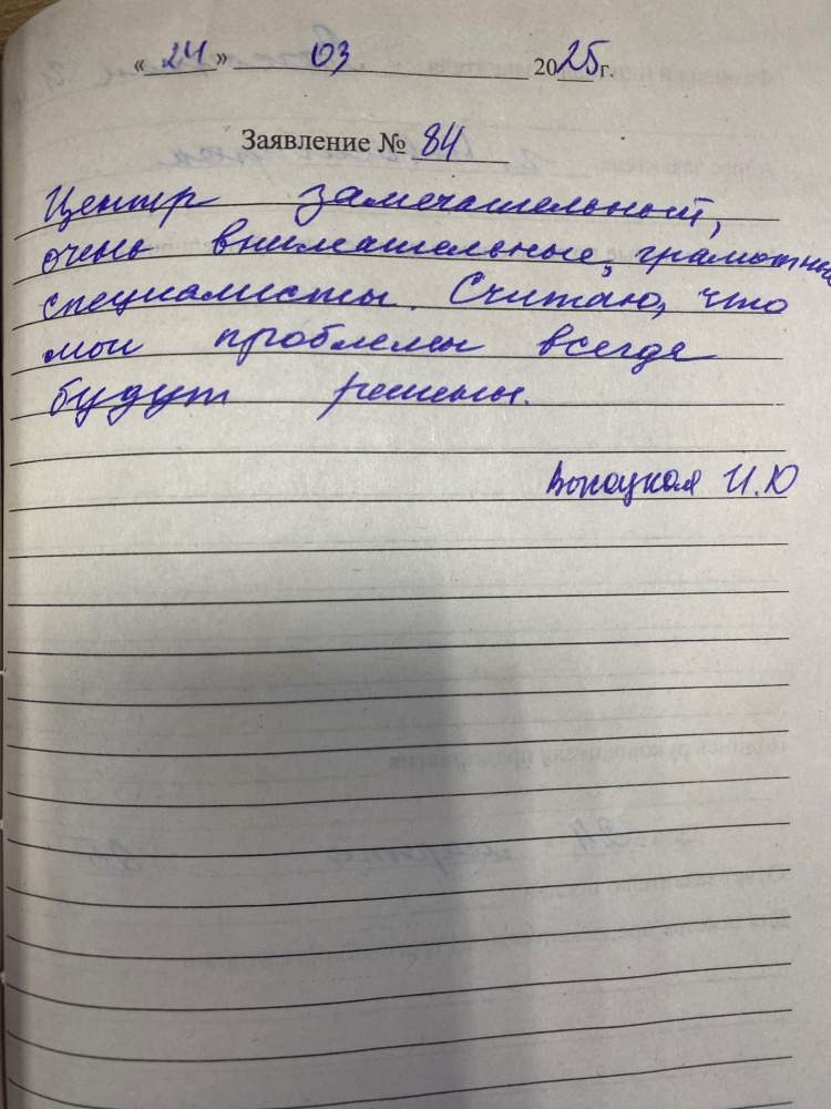 Центр замечательный, очень внимательные, грамотные специалисты. Считаю, что мои проблемы всегда будут решены.