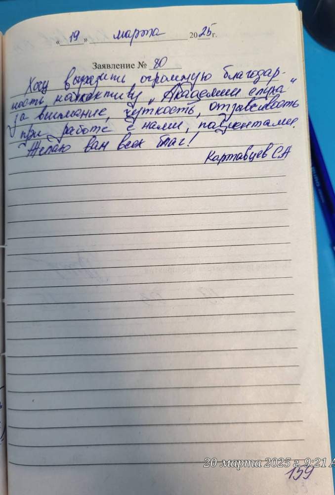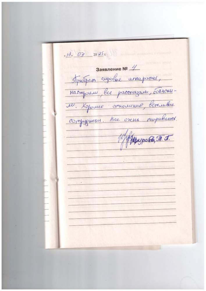 Хочу выразить огромную благодарность коллективу "Академии Слуха" за внимание, чуткость, отзывчивость при работе с нами, пациентами. Желаю Вам всех благ!