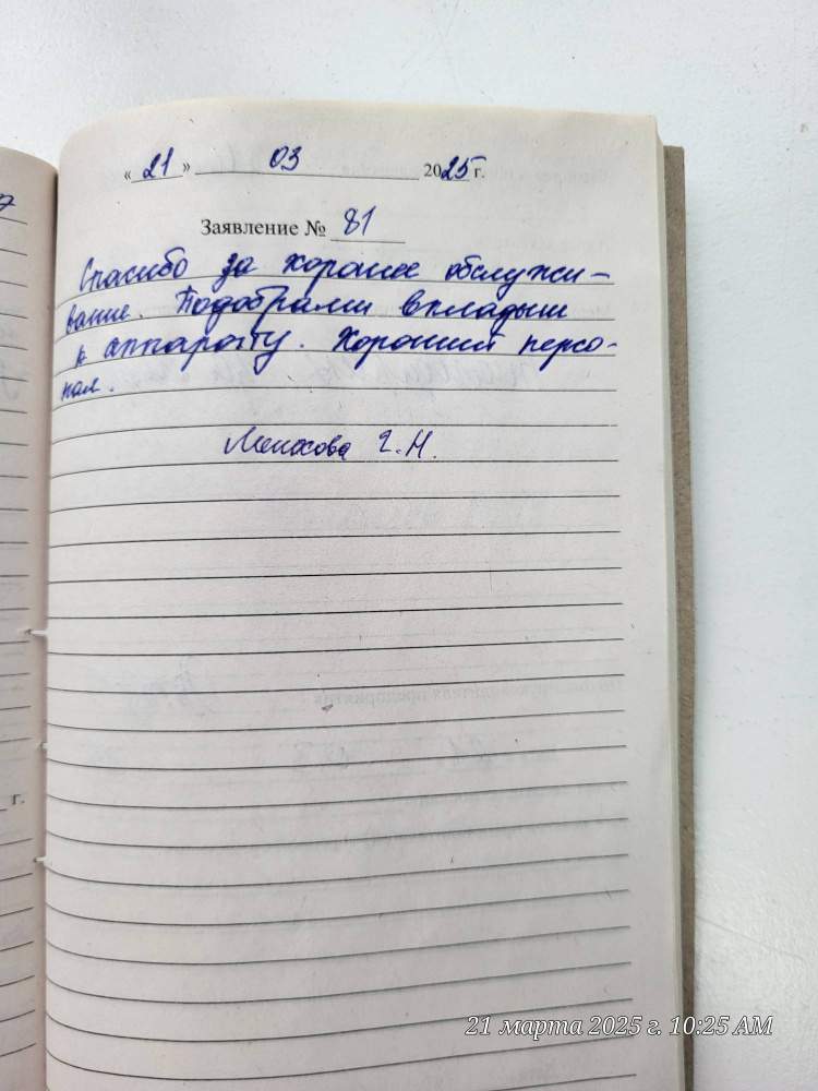 Спасибо за хорошее обслуживание. Подобрали вкладыш к аппарату. Хороший персонал.