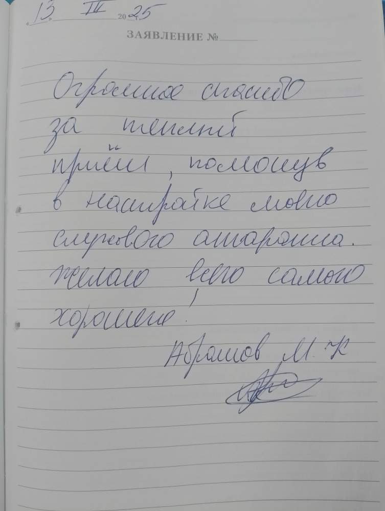 Огромное спасибо за тёплый приём, помощь в настройке моего слухового аппарата. Желаю всего самого хорошего.