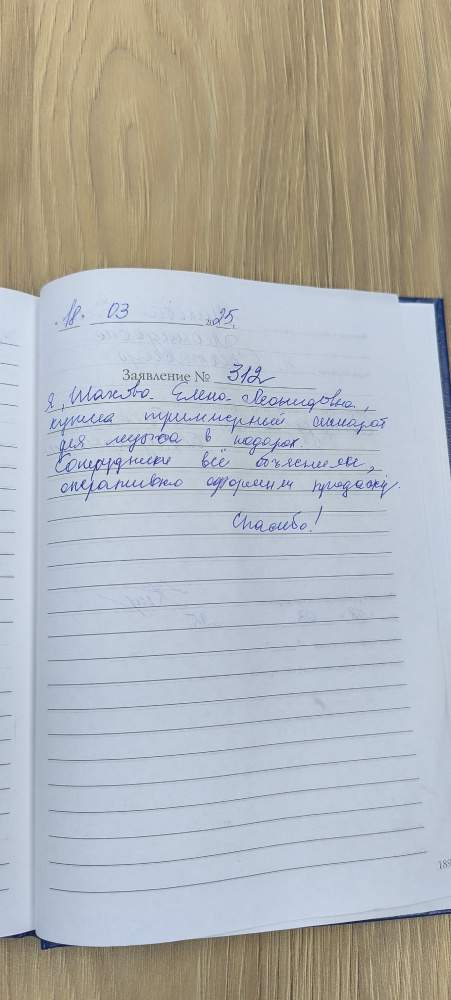 Я, Шахова Елена Леонидовна, купила триммерный аппарат для мужа в подарок. Сотрудники всё объяснили, оперативно оформили продажу. Спасибо!
