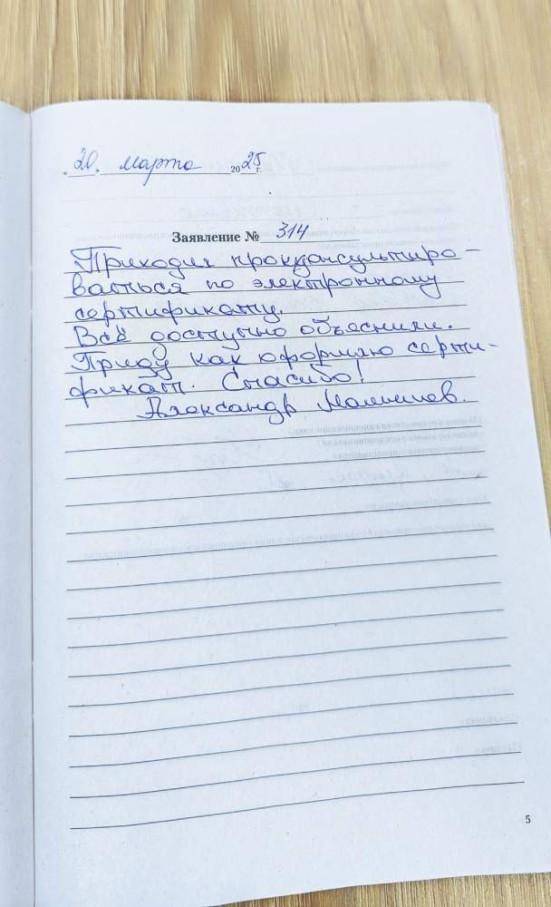 20.03.2025 Приходил проконсультироваться по электронному сертификату. Всё доступно объяснили. Приду как оформлю сертификат. Спасибо! Александр Малышев.