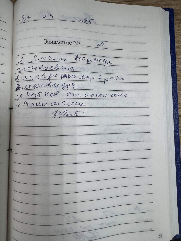 я Ямских Надежда Васильевна благодарю лор врача Александру за чуткое отношение и понимание