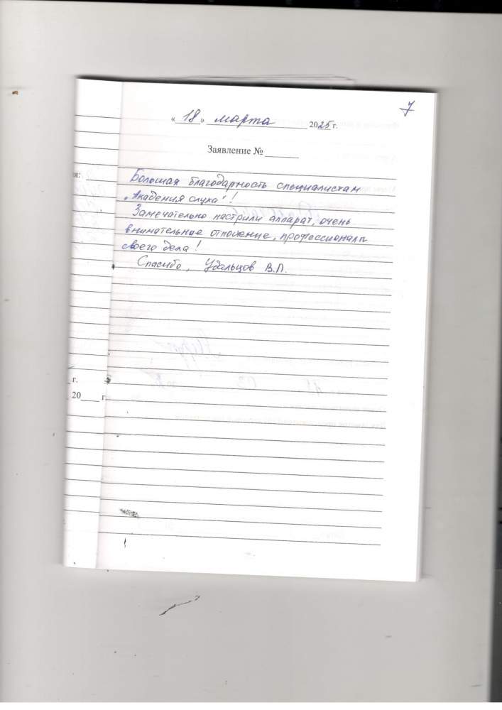 Большая благодарность специалистам "Академия Слуха"! Замечательно настроили аппарат, очень внимательное отношение, профессионалы своего дела! Спасибо.
