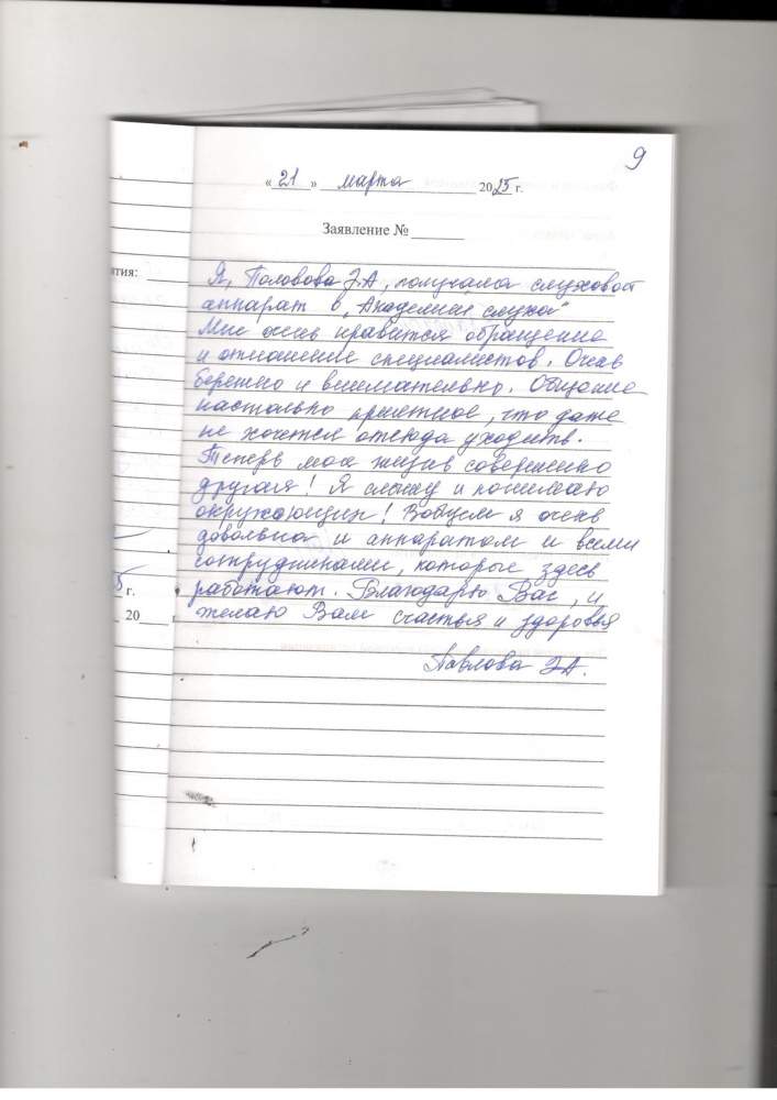Я, Половова Э.А., получала слуховой аппарат в "Академии Слуха" .Мне очень нравится обращение и отношение специалистов.Очень бережно и внимательно. Общение настолько приятное,что даже не хочется отсюда уходить.Теперь моя жизнь совершенно другая! Я слышу и понимаю окружающих! Вообщем, я очень довольна и аппаратом и всеми сотрудниками,которые здесь работают. Благодарю Вас и желаю Вам счастья и здоровья