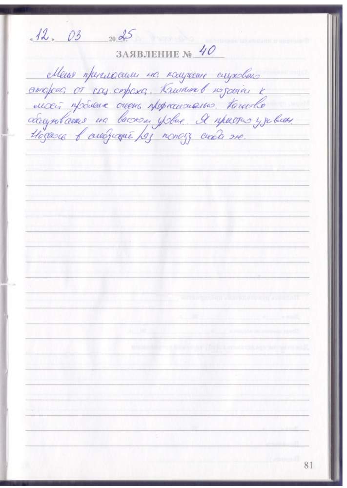 Выражаю благодарность коллективу Академия Слуха за чуткость к пациентам. Я осталась очень довольна их работой ,вниманием.Благодарю.