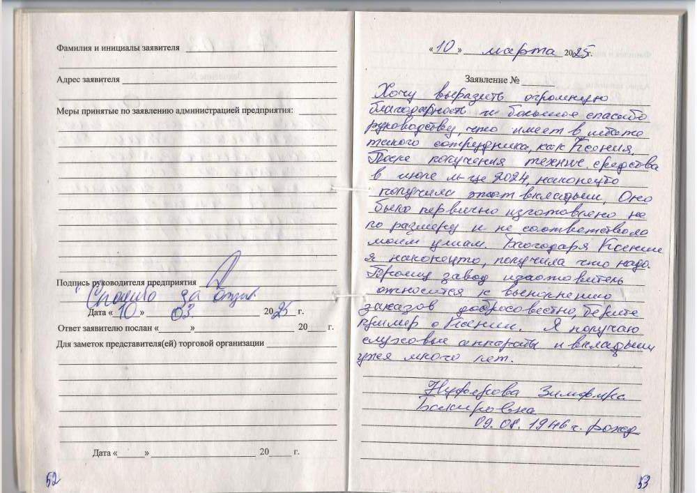 Хочу выразить огромную благодарность и большое спасибо руководству, что имеет в штате такого сотрудника, как Ксения. После получения технического средства в июле месяце 2024, наконец-то получила этот вкладыш. Оно было первично изготовлено не по размеру и не соответствовало моим ушам. Благодаря Ксении я наконец то получила что надо. Прошу завод изготовитель относится к выполнению заказов добросовестно, берите пример с Ксении. Я получаю слуховые аппараты и вкладыши уже много лет.