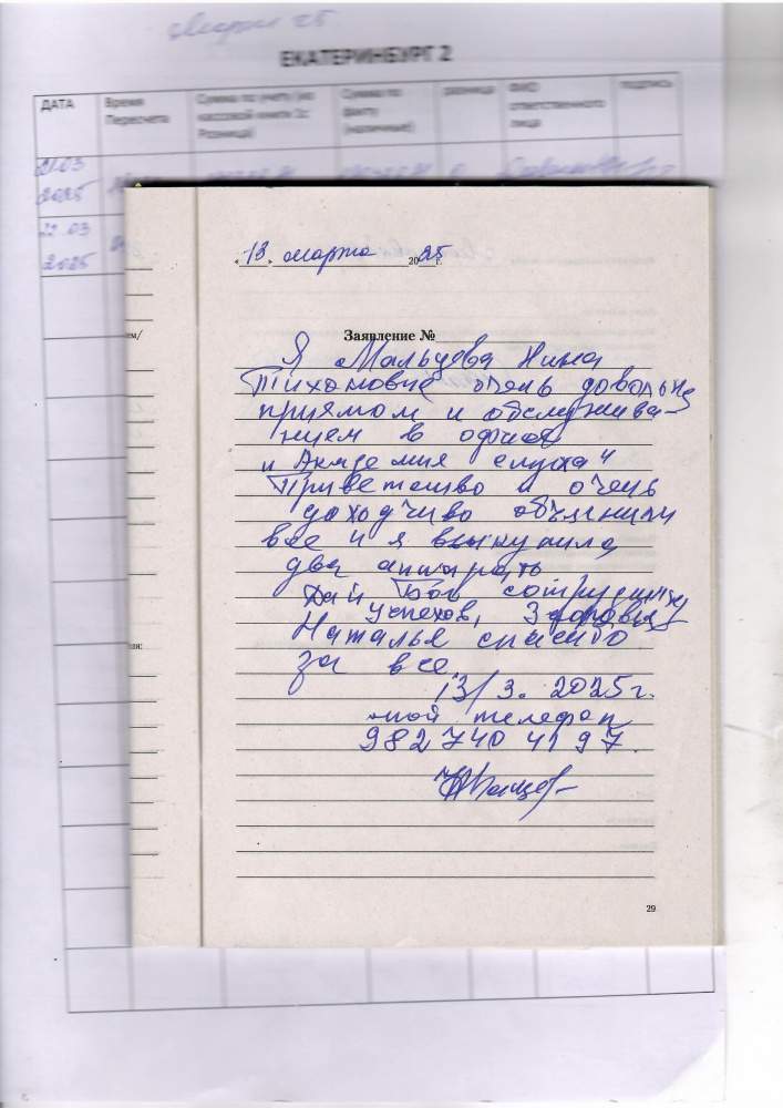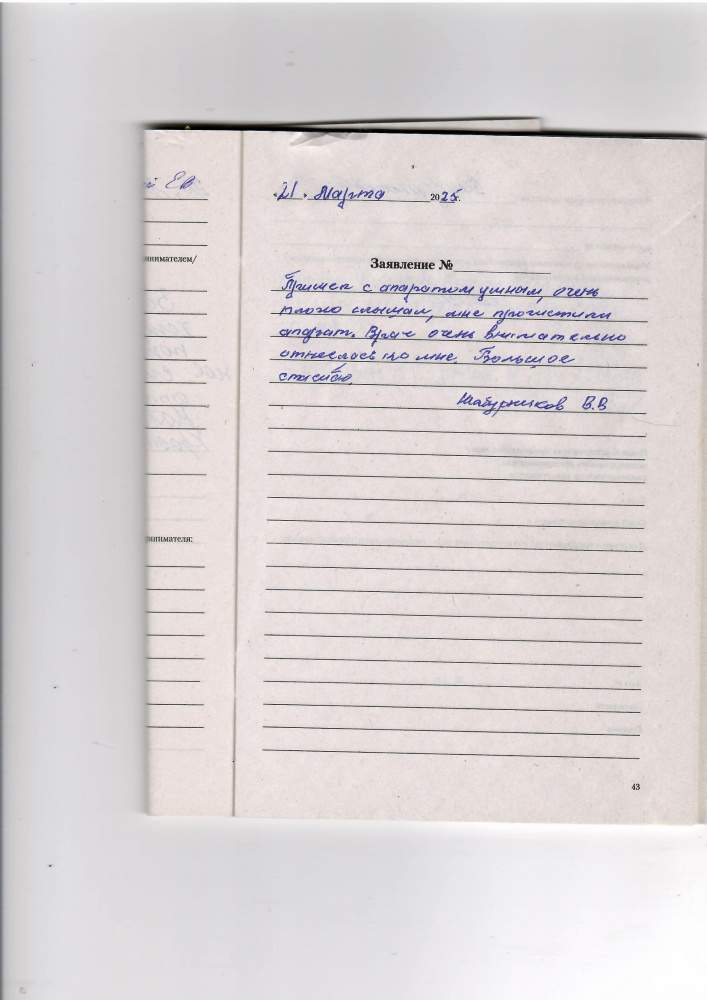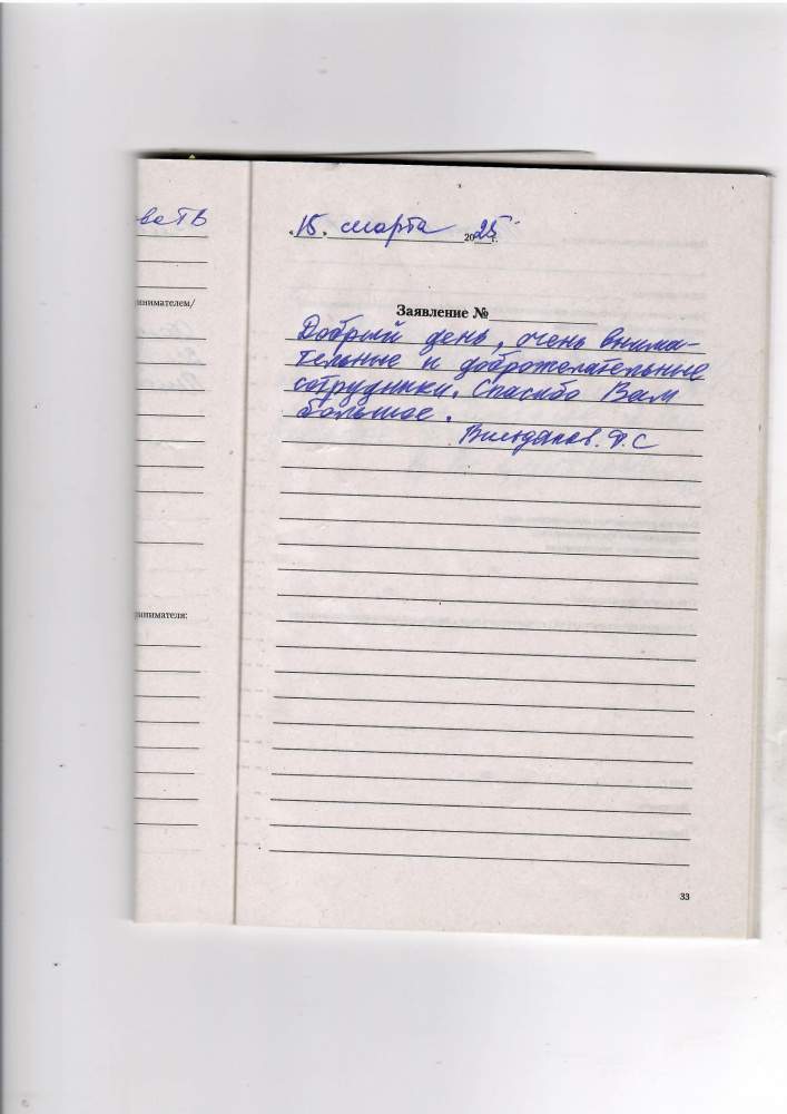 Добрый день, очень внимательные и доброжелательные сотрудники. Спасибо Вам большое.