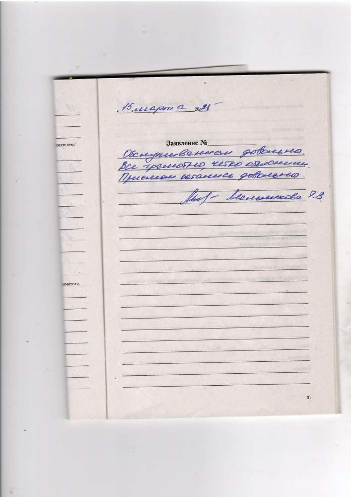 Обслуживанием довольна. Все грамотно четко объяснили. Приемом остались довольны