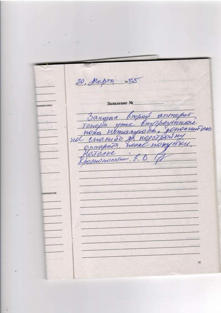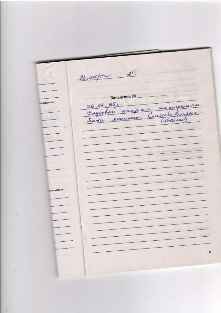 Пришел с аппаратом ушным, очень плохо слышал, мне почистили аппарат. Врач очень внимательно отнеслась ко мне. Большое спасибо